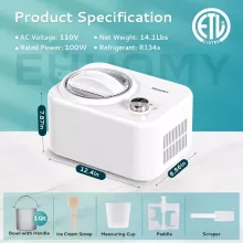 • Powerful Compressor: 100W motor ensures quick, even cooling and consistent texture every time.