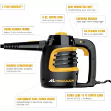 Take the power of steam wherever you need it with the McCulloch MC1230 Handheld Steam Cleaner—your compact solution for deep cleaning both indoors and out. Using only ordinary water heated to over 200°F, this chemical-free steam cleaner naturally removes grease, grime, stains, and mold from a wide variety of surfaces. With 11 versatile accessories included, it’s perfect for kitchens, bathrooms, cars, patios, grills, tools, and more.