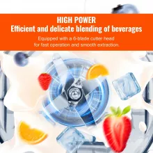 - Powerful Performance: With a maximum power of 2200W and a rotation speed of 2600RPM, this blender offers unmatched efficiency, making it perfect for both soft fruits and tough ingredients like ice or nuts.