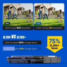Our 5MP HD PoE Security Camera stands out with its superior image quality, provided by a 3K IR network camera and a 2.8mm lens that brings every detail to life. The efficient H.265+ compression technology and advanced motion detection capabilities ensure that your surveillance system is both effective and efficient. With up to 100ft of night vision, you’ll enjoy clear, detailed images even in complete darkness. The built-in microphone adds an additional layer of security by capturing sound, making this camera perfect for a wide range of applications.