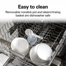 - Easy to Clean: The removable nonstick cooking pot and steam/rinse basket are both dishwasher safe, making cleanup quick and effortless. Spend less time cleaning and more time enjoying your meals.