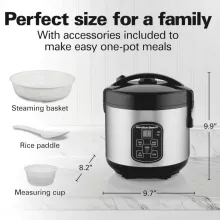 - Multi-Function Cooking: This rice cooker and food steamer allows you to make rice, whole grains, hot cereal, and more. Plus, you can steam seafood, eggs, vegetables, and other foods while your rice cooks, creating easy one-pot meals.