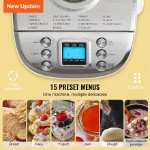 - 15 Versatile Functions: With 15 preset programs, including options for French bread, whole wheat, quick bread, gluten-free, dough, jam, cakes, and more, this bread maker allows you to create a wide range of baked goods with ease. The intelligent one-key operation makes it perfect for both beginners and seasoned bakers.