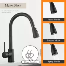 Upgrade your kitchen with the sleek and modern Black Pull-Out Kitchen Faucet, designed to bring both style and convenience to your space. Featuring a stunning black finish paired with a silver nickel handle, this faucet effortlessly combines contemporary design with superior functionality. Whether you’re remodeling your kitchen or just looking to enhance your daily tasks, this faucet is the perfect addition.