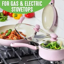 What sets this cookware apart is its commitment to sustainability and health. The innovative diamond-infused ceramic nonstick coating ensures easy release of food and minimal oil usage, while the construction from recycled materials speaks to a greener planet. The vibrant pink color adds a touch of fun and personality to your kitchen decor.