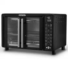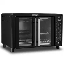 Equipped with FryForce 360° Technology, this convection oven uses fast, super-heated air to cook your meals evenly and thoroughly, creating crispy exteriors and juicy interiors with up to 80% less fat. The spacious 24L capacity easily fits a 12″ pizza or 6 slices of toast, making it ideal for everything from weekday dinners to weekend brunches. The sleek French doors, digital display, and large viewing window make this oven a stylish and practical addition to any kitchen countertop.