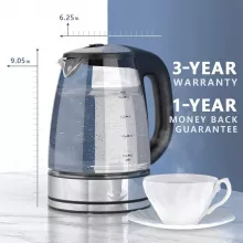 • Safe and Durable: Made with high-quality borosilicate glass, this kettle is scratch-resistant, BPA-free, and equipped with auto shut-off and boil-dry protection for your safety.