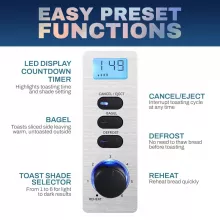 • Defrost & Reheat Functions: The defrost function allows you to toast frozen bread, while the reheat function warms your toast without over-browning, so you can enjoy warm, fresh toast anytime.