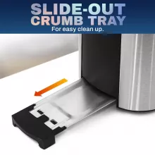 • Convenient Crumb Tray & Cord Storage: The removable crumb tray makes cleanup a breeze, and the built-in cord storage keeps your kitchen tidy and organized when not in use.