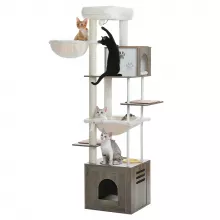 Let your cats enjoy their own personal adventure park with this large and versatile cat tree. Whether they’re climbing to new heights, relaxing in one of the spacious condos, or scratching to their heart’s content, this tower will quickly become their favorite spot in the house!