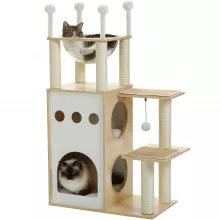Whether you have a playful kitten or a senior cat who loves to lounge, this modern cat tower caters to all needs. Its sleek wooden design blends beautifully with any home décor, making it a stylish yet functional addition to your space. Give your cat a kingdom of their own with this high-quality, multi-level cat tree.