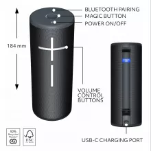 Its ability to withstand the elements means you can take it anywhere without a second thought. Plus, the long-lasting battery ensures the music won’t stop until you’re ready. Control your tunes with ease thanks to the convenient magic button, and let the speaker’s 360-degree audio fill the space, no matter where you place it.