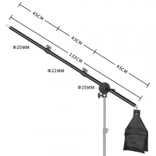 Its unique telescopic design and the ability to support different types of lighting equipment make this boom arm stand out. The two crossbars with varied load capacities cater to both lightweight and heavier setups, ensuring that you have the right support for any situation. Additionally, the sandbag adds an extra layer of stability, making it ideal for use in diverse shooting environments.