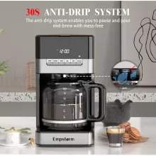 • Anti-Drip System: Pour a cup mid-brew without mess or spills.
