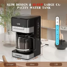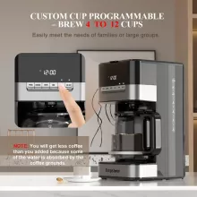 Start your morning right with the Programmable Drip Coffee Maker, designed to bring convenience and rich, flavorful coffee to your kitchen. Whether you need a single cup to jumpstart your day or a full 12-cup carafe to share, this coffee maker delivers a smooth, robust brew with just the press of a button. Its programmable timer lets you set your brew the night before, so you wake up to the inviting aroma of fresh coffee.