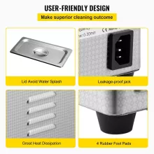 - Humanized Design: Compact size with an 800ml tank, equipped with a lid to prevent water splash, leakage-proof jack, and efficient heat dissipation. Perfect for multiple scenes, including jewelry, lab, circuit boards, dental devices, dishware, and industrial applications.