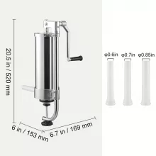 This Vertical Sausage Stuffer is a perfect addition to any kitchen, whether you’re making sausages for family dinners, small gatherings, or running a butcher shop or supermarket. The easy-to-use design allows you to produce high-quality sausages with minimal effort, while the large capacity ensures you can produce enough for a crowd. The ergonomic handle and smooth operation make stuffing sausages a breeze, while the air release valve ensures the best texture and flavor in every bite. The included 3 stainless steel stuffing tubes offer versatility in creating sausages of different sizes, catering to your specific preferences.